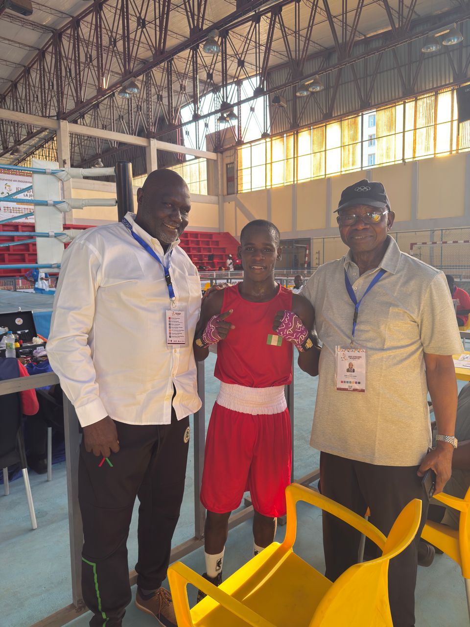 Cover photo shows Star Boy, Abijuwon Farouq with Nigerian Team officials after his win over Williams of Ghana.