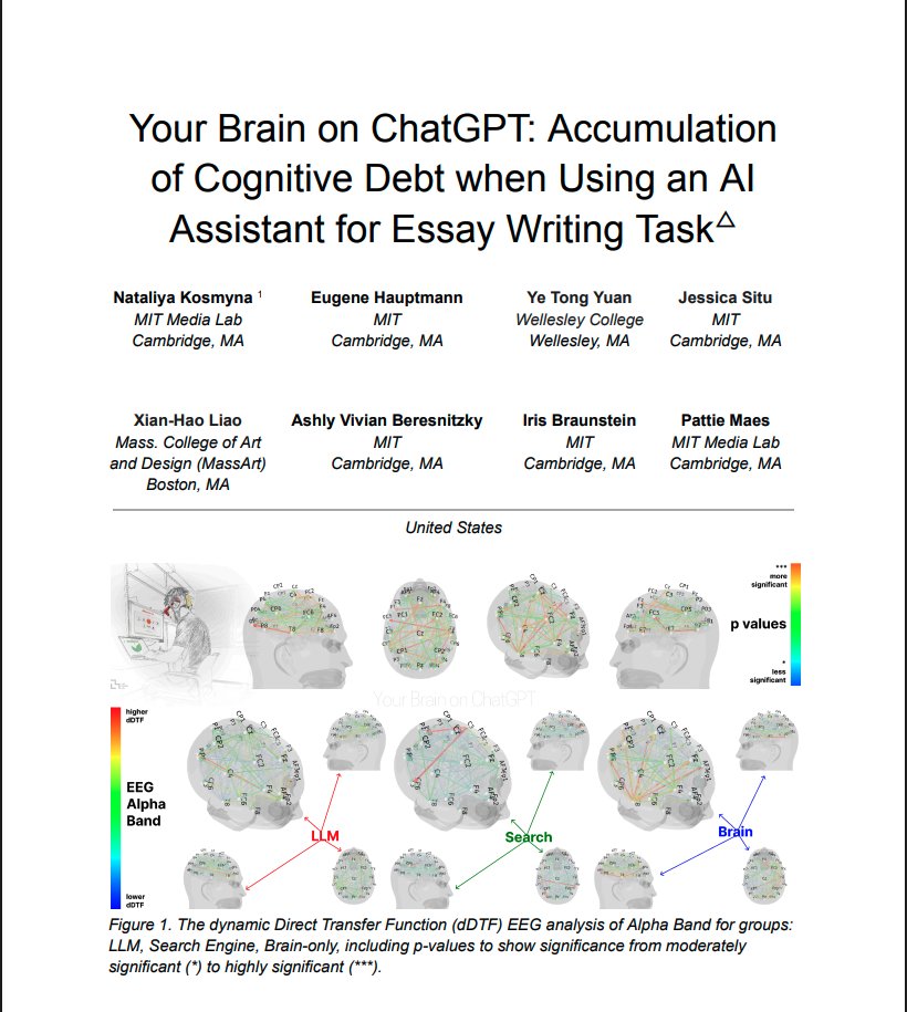 Ultimately, the findings present a stark choice noting that: society must decide whether to surrender its intellectual agency to machines or to cultivate a partnership with AI that sharpens, rather than weakens, human cognition.