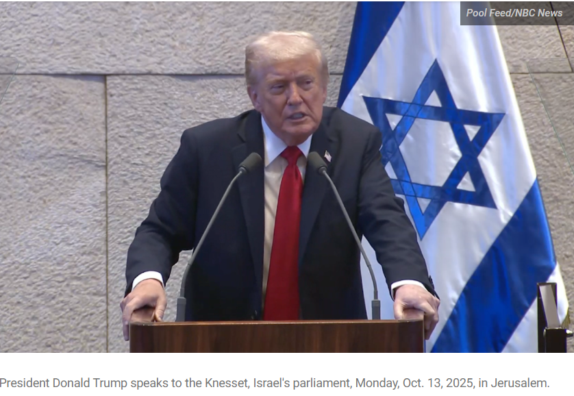 Following his address to the Knesset, Trump is scheduled to travel to Sharm El-Sheikh, Egypt, for a regional peace summit alongside Egyptian President Abdel Fattah al-Sisi and leaders from over 20 nations.