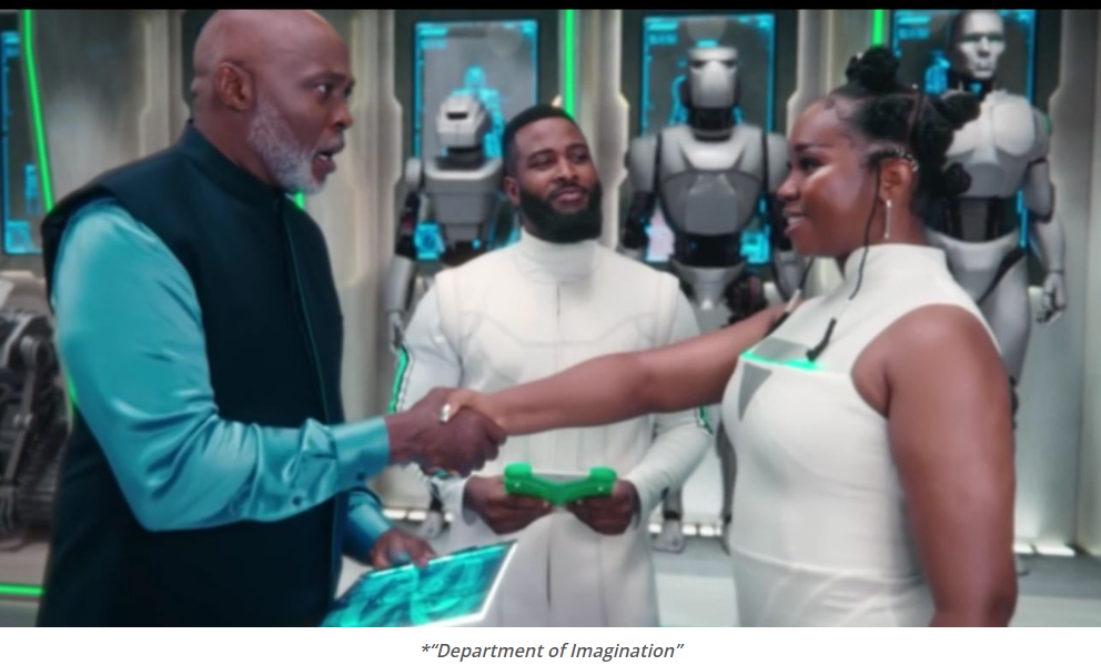 Scenes depict a world that feels smarter and more dynamic, including real time gaming and improved food processes showcased by Hilda Baci, alongside a creative technology presence portrayed by Bamike Adenibuyan.