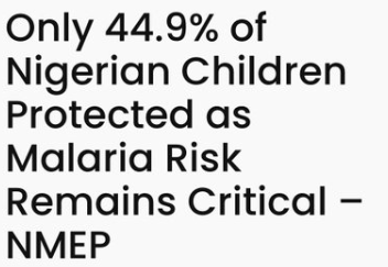 PERSISTENT MALARIA vulnerability among children has raised concern as Nigeria’s National Malaria Elimination Programme (NNMEP) reports that only 44.9% use insecticide treated mosquito nets while about 97% of the population remains at risk of infection.