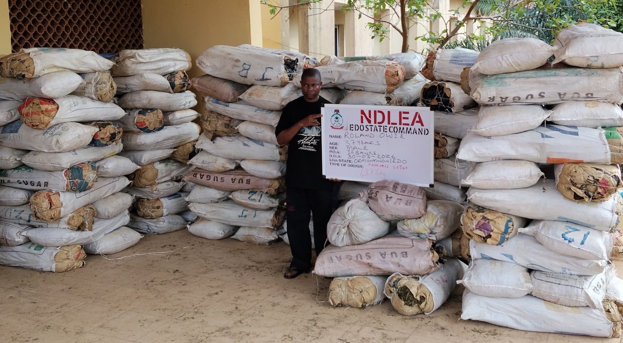 In Edo State, a suspect Roland Owie, 37, was arrested on Monday 30th March after a raid at Egbanke community Orhionmwon LGA where 1,378kg of skunk were recovered.