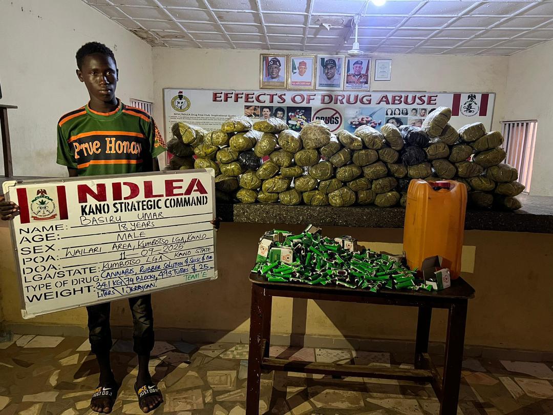 In Yobe State, a suspect, Mohammed Auwal, was arrested at Gadan Talakawa in Potiskum after 22.1kg of cannabis sativa was recovered from his residence.