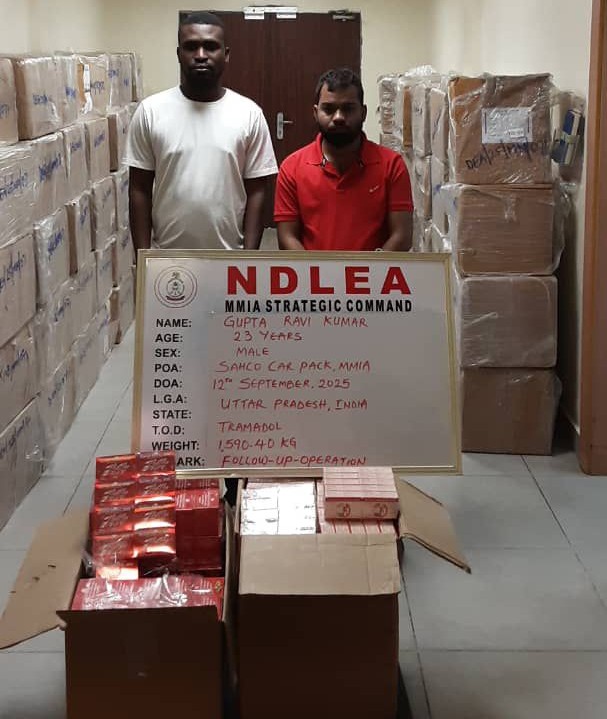 According to the National Drug Law Enforcement Agency (NDLEA), a clearing agent and two drivers were arrested on Thursday 11th September while attempting to move the shipment from the airport in two trucks.