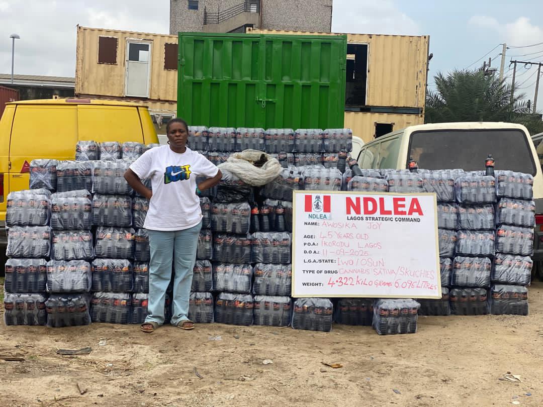 NDLEA operatives also raided a factory producing skuchies, a mix of cannabis and blackcurrant drink, in Caritas, Ibeshe, Ikorodu on Thursday 11th September.