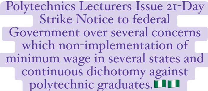 UNRESOLVED LABOUR issues in Nigeria’s polytechnic sector have prompted the Academic Staff Union of Polytechnics (ASUP) to issue a 21-day ultimatum to the Federal Government.