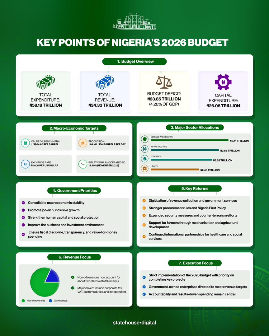 He made the disclosure while presenting the 2026 budget to the National Assembly, explaining that the low implementation of the 2025 capital budget resulted from a focus on completing priority 2024 projects during the transition period.