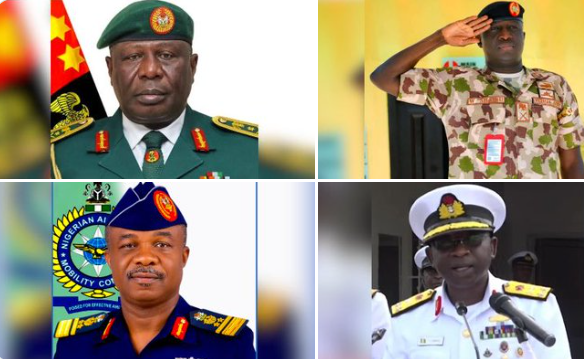 According to the correspondence, President Tinubu nominated Major General Olufemi Oluyede as Chief of Defence Staff, Major General Waheedi Shaibu as Chief of Army Staff, Rear Admiral Idi Abbas as Chief of Naval Staff, Air Vice Marshal Kennedy Aneke as Chief of Air Staff, and Major General Emmanuel Undiendeye as Chief of Defence Intelligence.