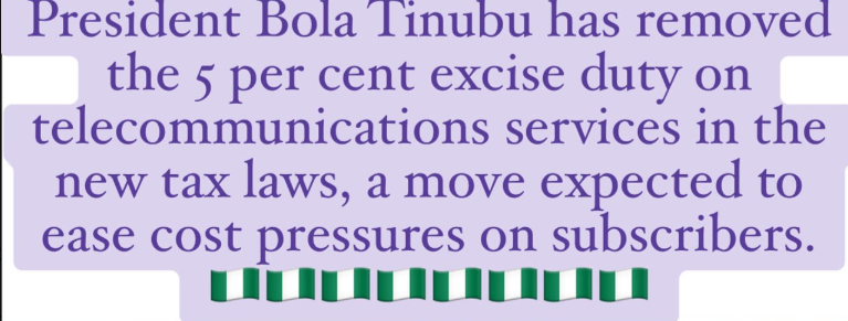 TELECOM OPERATORS and consumers will no longer bear the cost of the 5 per cent excise duty previously applied to voice and data services in Nigeria, following President Bola Tinubu’s decision to abolish the levy under the country’s revised tax laws.