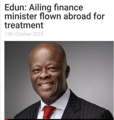 Last week, presidential spokesperson Bayo Onanuga confirmed that Edun was indisposed and had travelled abroad for rest and medical attention.